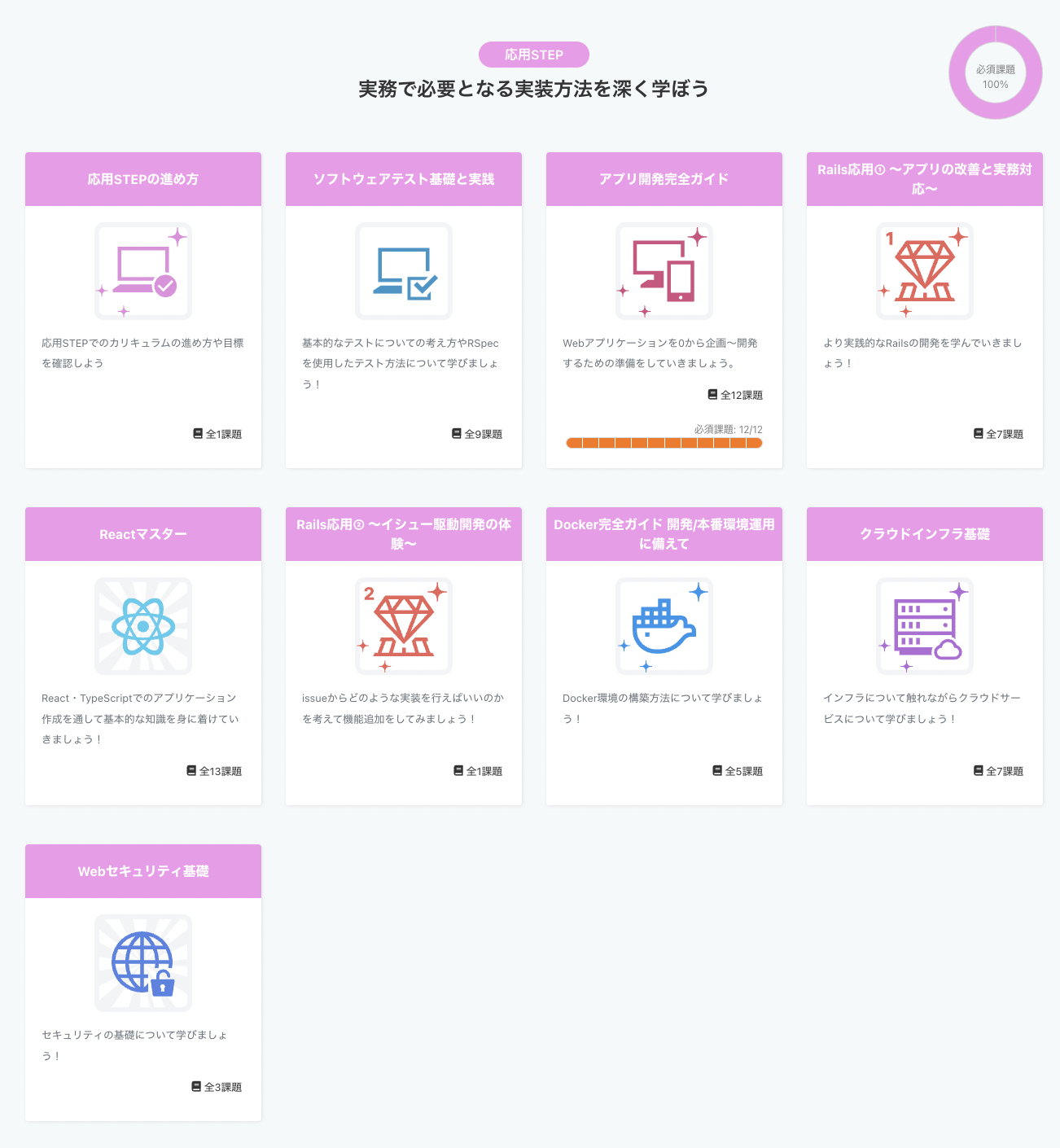 応用STEPではそのような現場の現状を考慮し、コードリーディングが鍛えられる課題を取り組んでいただいています。