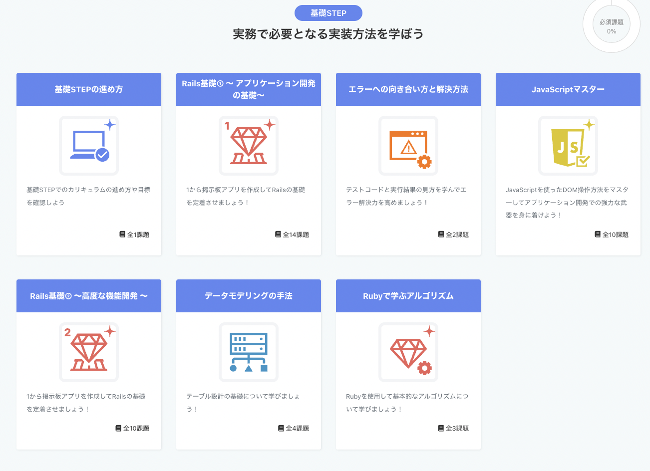 RUNTEQのカリキュラムは、大きく分けて以下のステップで構成されています。